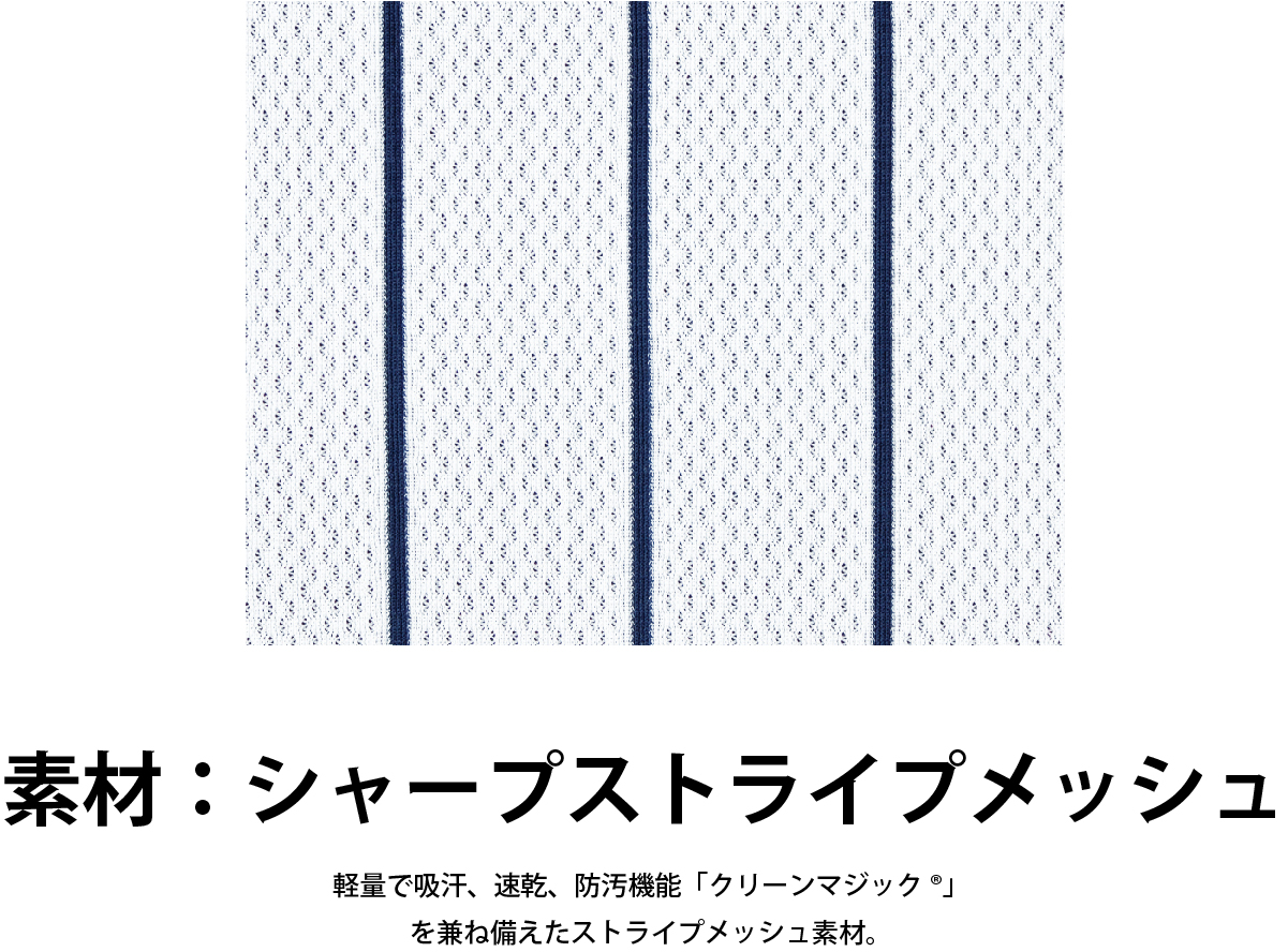 軽量で防汚性にも優れ、ストライプデザインのチームユニフォームに最適。